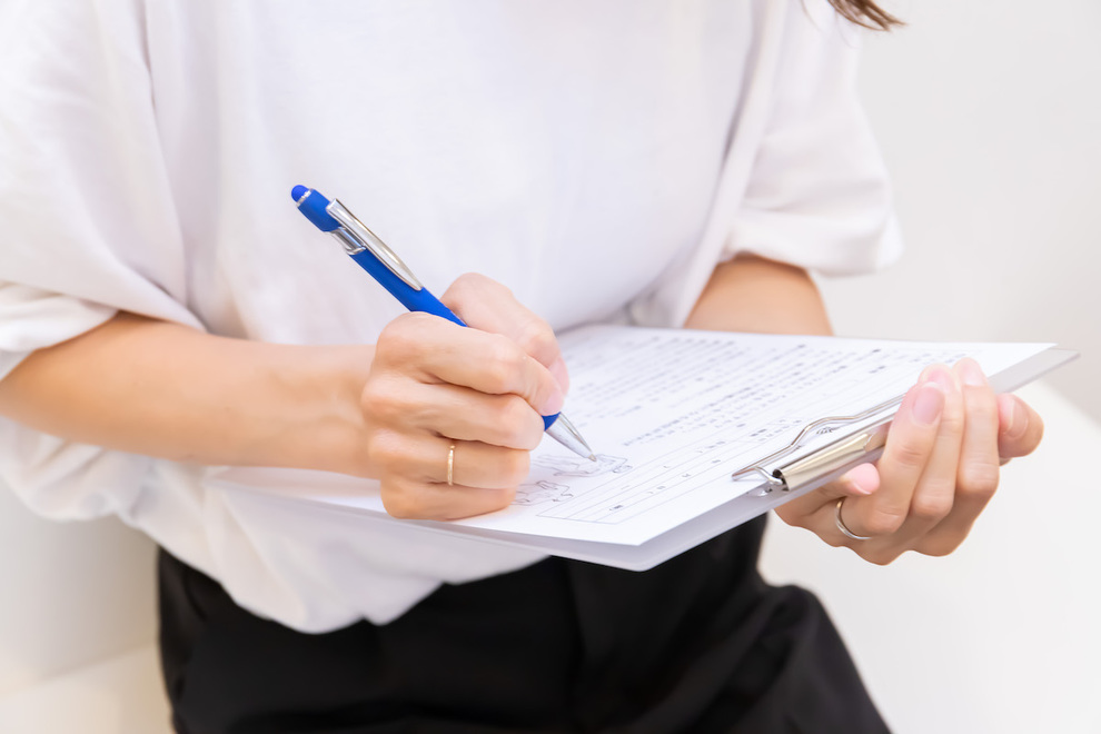 初めての方は、待合室でカウンセリング票を記入していただきます。